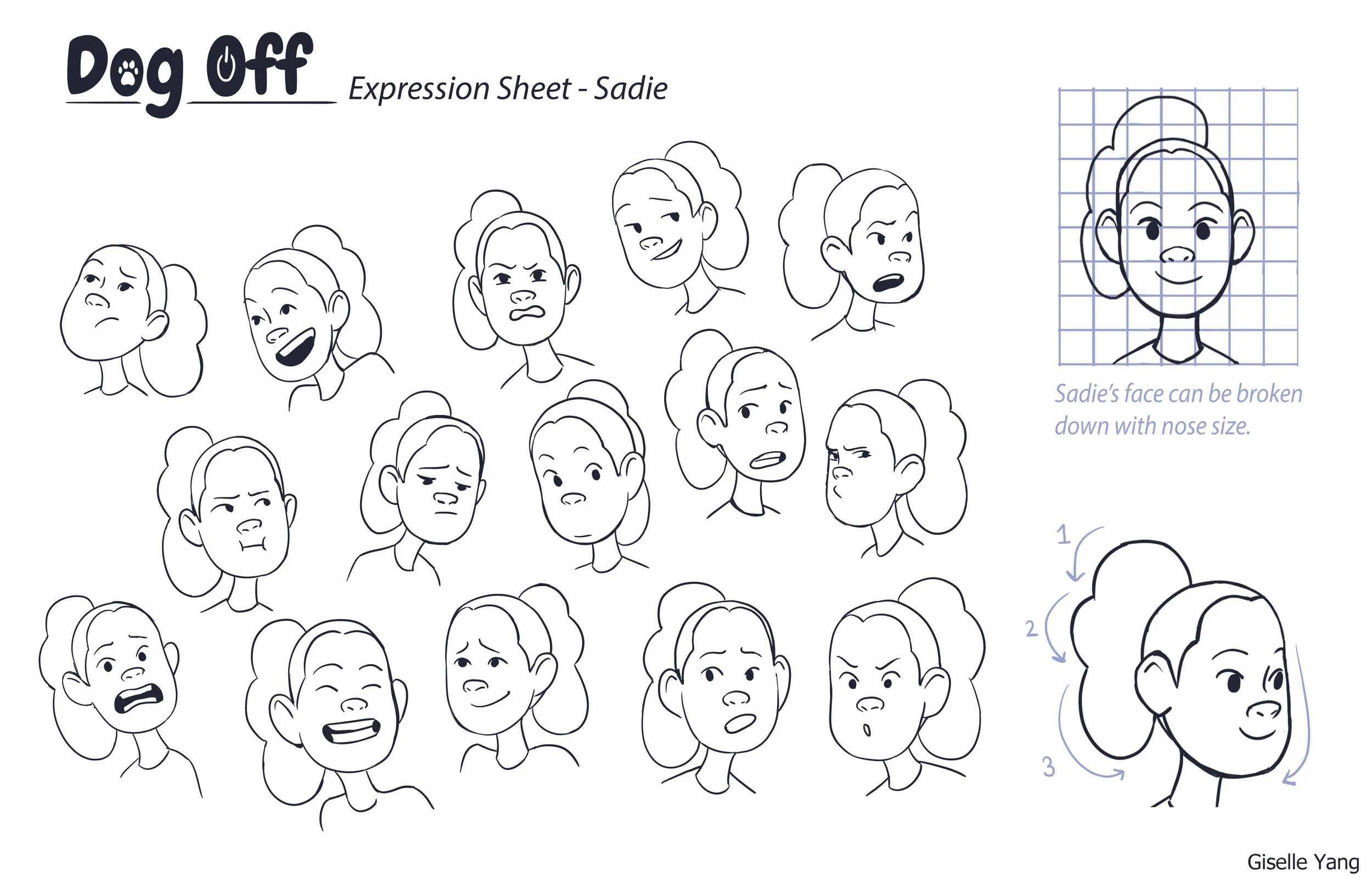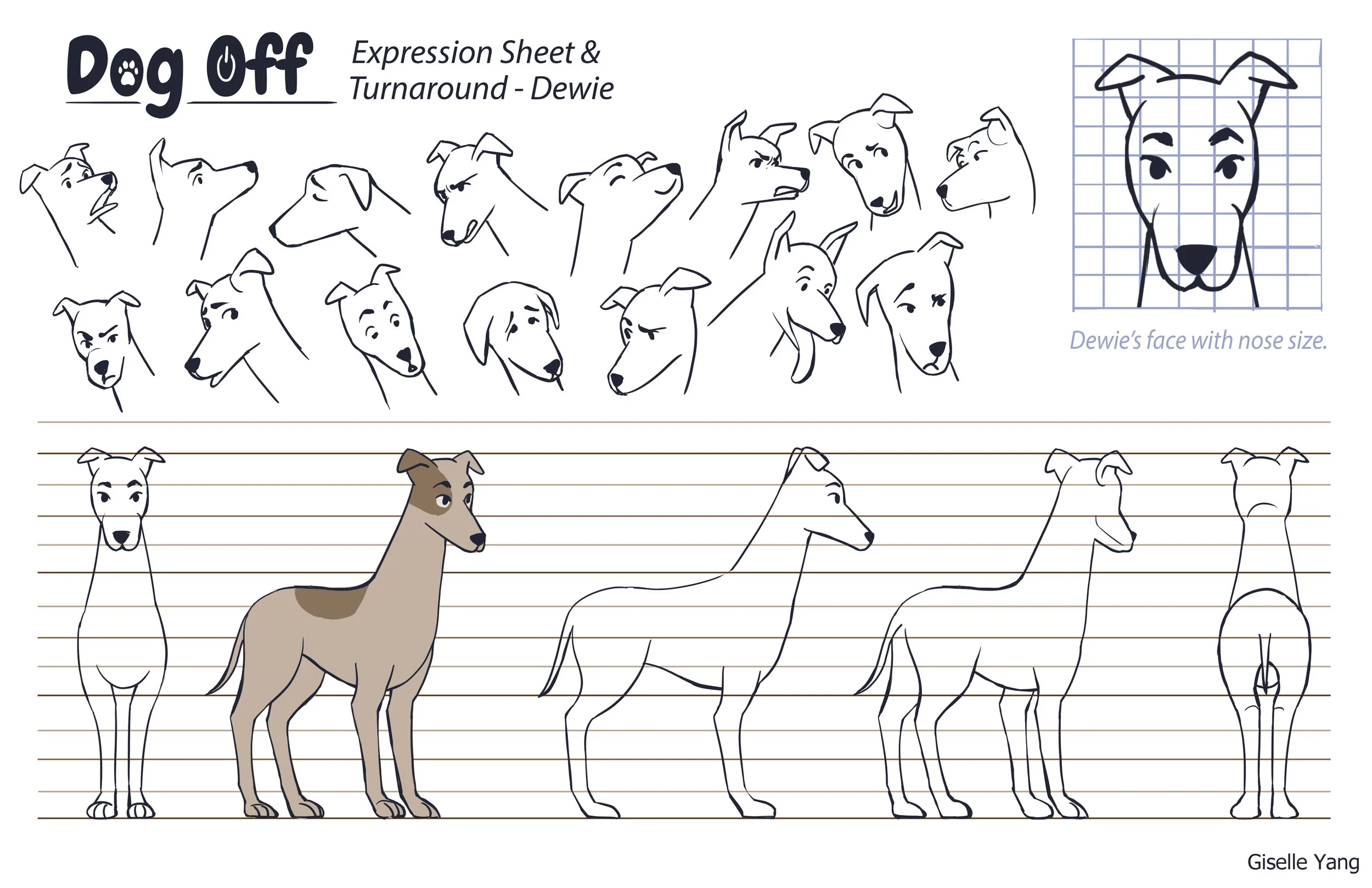 Model sheets for my short film, “Dog Off”, about a girl who suffers from notification anxiety and her furry friend that helps her.